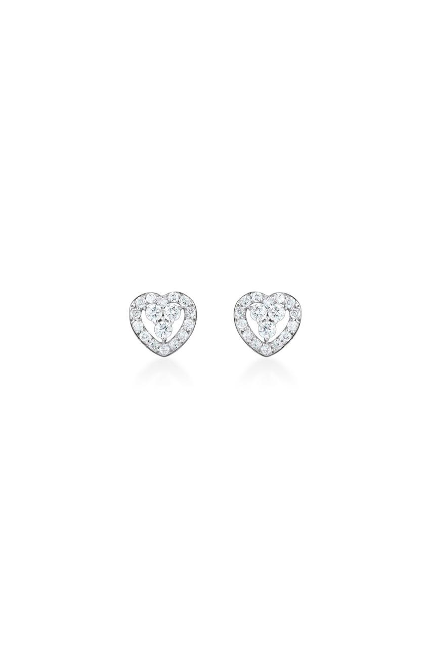 PAR DE BRINCOS EM  OURO BRANCO 18K CORAÇÃO | 0,28CT - 28 P 1,30MM |0,24CT - 6 P 2,10MM