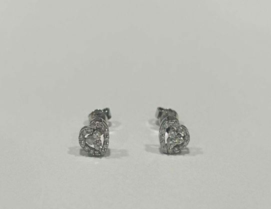 PAR DE BRINCOS EM OURO BRANCO 18K CORAÇÃO. NOVO! COM CERTIFICADO
